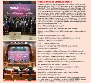 MEGATRENDS LANSMANI   TEPAV TARAFINDAN, İMDER VE TOBB İŞ BİRLİĞİYLE KOMATEK SPONSORLUĞUNDA HAZIRLANAN MEGATRENDS2030 RAPORU, TÜRKİYE’NİN İNŞAAT VE İŞ