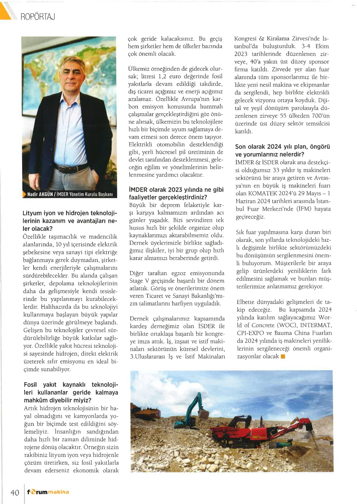 İMDER YÖNETİM KURULU BAŞKANI SN. NADİR AKGÜN, FORUM MAKİNA’YA 2023 YILI DEĞERLENDİRMESİNDE BULUNDU VE 2024 YILI İÇİN ÖNGÖRÜLERİNİ PAYLAŞTI.