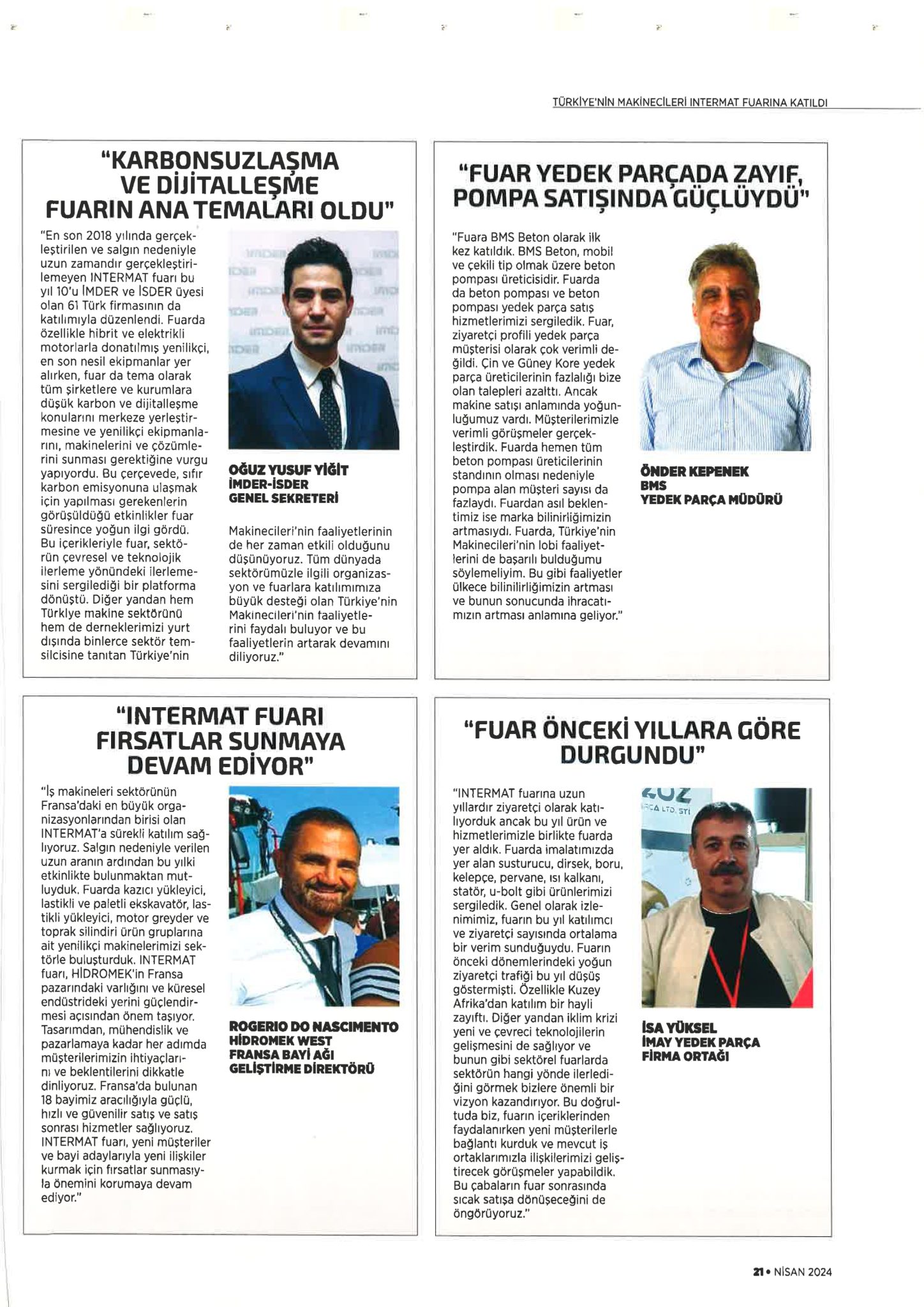 İMDER&İSDER Genel Sekreteri Sn. Oğuz Yusuf YİĞİT, MOMENT EXPO Dergisi’ne 2024 INTERMAT Fuarı ile ilgili değerlendirmelerde bulundu.